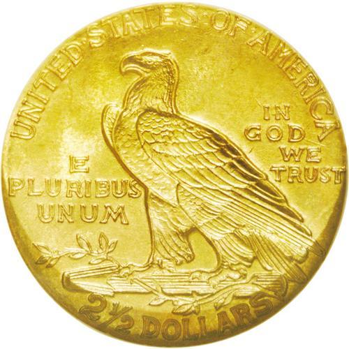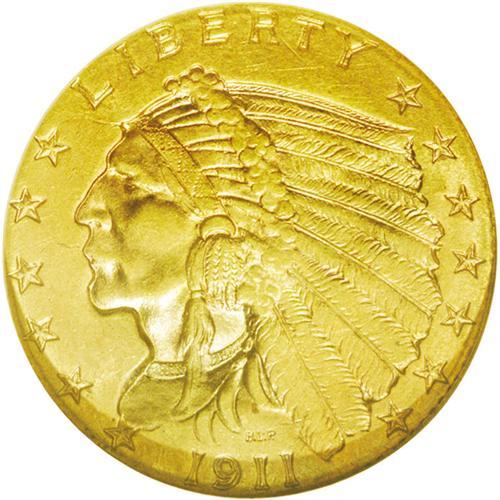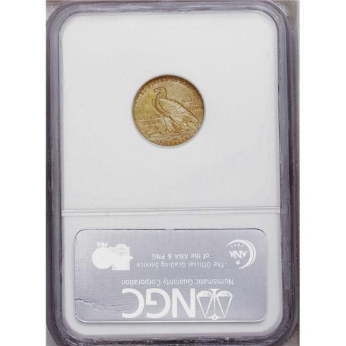 <B>1911<$2 1/2> MS64 NGC.</B></I> There are hardly any abrasions that would bar this piece from a full Gem grade. The satiny, matte-like luster is embellished with splashes of crimson-orange patina. Quite well impressed for the series with a soft, attractive appearance overall.