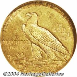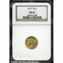 <B>1911<$2 1/2> MS64 NGC.</B></I> The lustrous reddish-orange surfaces show only a few mentionable abrasions on each side that seem to limit the grade. Still, an exceptionally pleasing example of this challenging type. <BR><BR><B>Important notice:</B> Heritage usually auctions material at the rate of 200-250 lots per hour. On some occasions eBay Live bid software or the Internet may not be able to keep up with the pace of the auction. We recommend placing a realistic absentee bid now as insurance to avoid disappointment. Occasionally the auctioneer may eliminate or reject an eBay Live bid, and the auctioneer may also reopen a lot after the close of the eBay live bidding (usually because we missed an audience bid), and may reject your bid even if it shows you as the winning bidder. By bidding via eBay Live, you agree that Heritage may award the lot to another bidder at its sole discretion under the circumstances described above or any other reasonable circumstances. Since eBay bids are not shown to us until we open the lot on the floor, we treat those bids just like floor bids. In most cases the floor responds before the eBay bid is presented to us, due to Internet lag time, so for consistency we have made it a policy that floor bids are always considered first over tie eBay live bids. Also please note that all Heritage lots purchased through eBay Live carry a 20% Buyer's Premium. Please make sure you read the Terms and Conditions before you bid. </span></font></tr></table></td></tr></table>