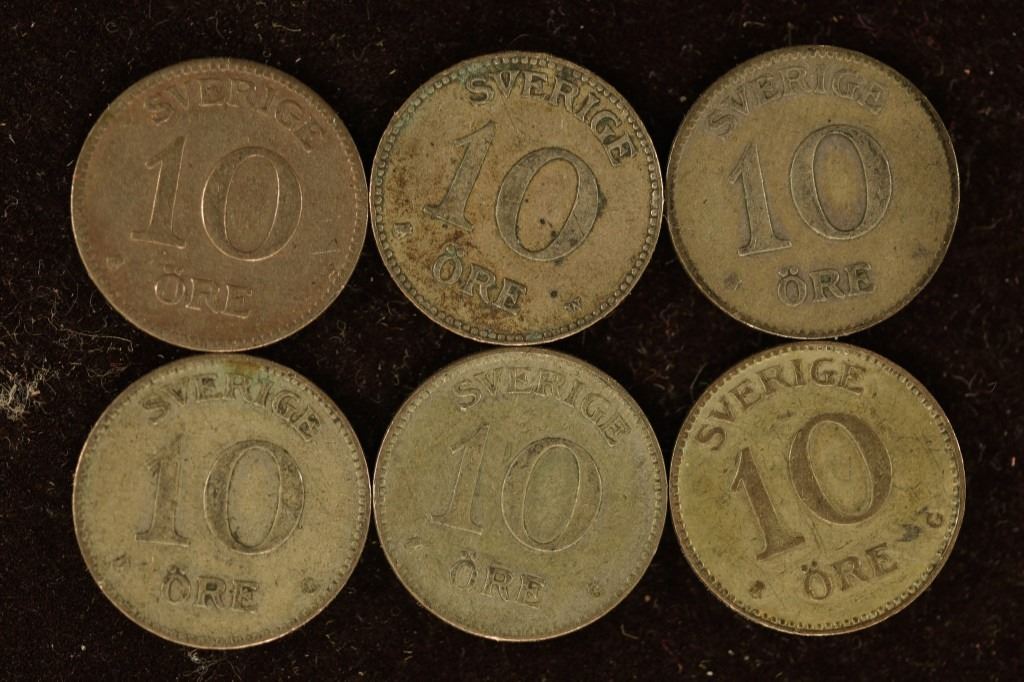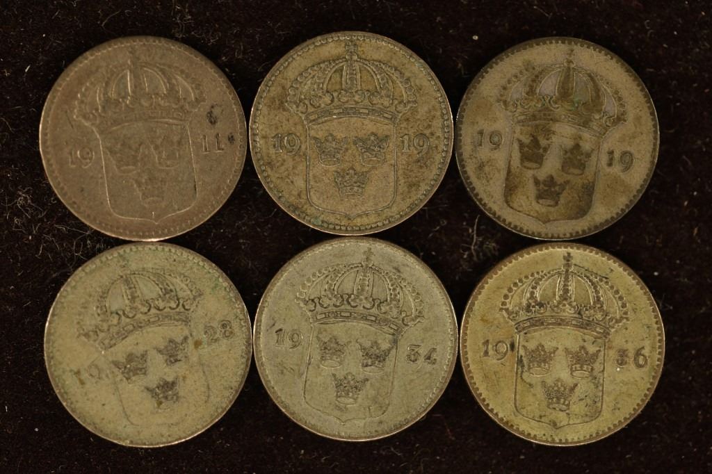 1911, 2-1919, 1928, 34 & 1936 SWEDEN SILVER 10 ORE