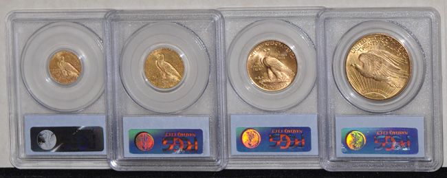 Beautiful 4-piece set includes 1911 $2.5 Indian (MS63), $5 Indian (MS63+), $10 Indian (MS63) and $20 St. Gaudens (MS63), all certified by PCGS!