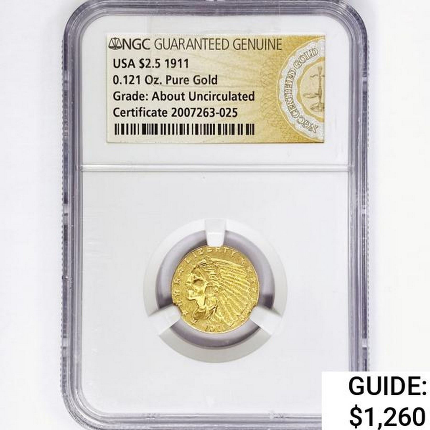 1911 $2.5 Gold Quarter Eagle NGC AU