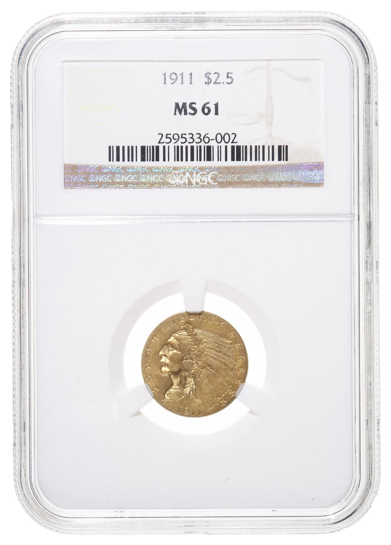 1911, $2.50 Gold Indian Head Quarter Eagle, NGC MS61,