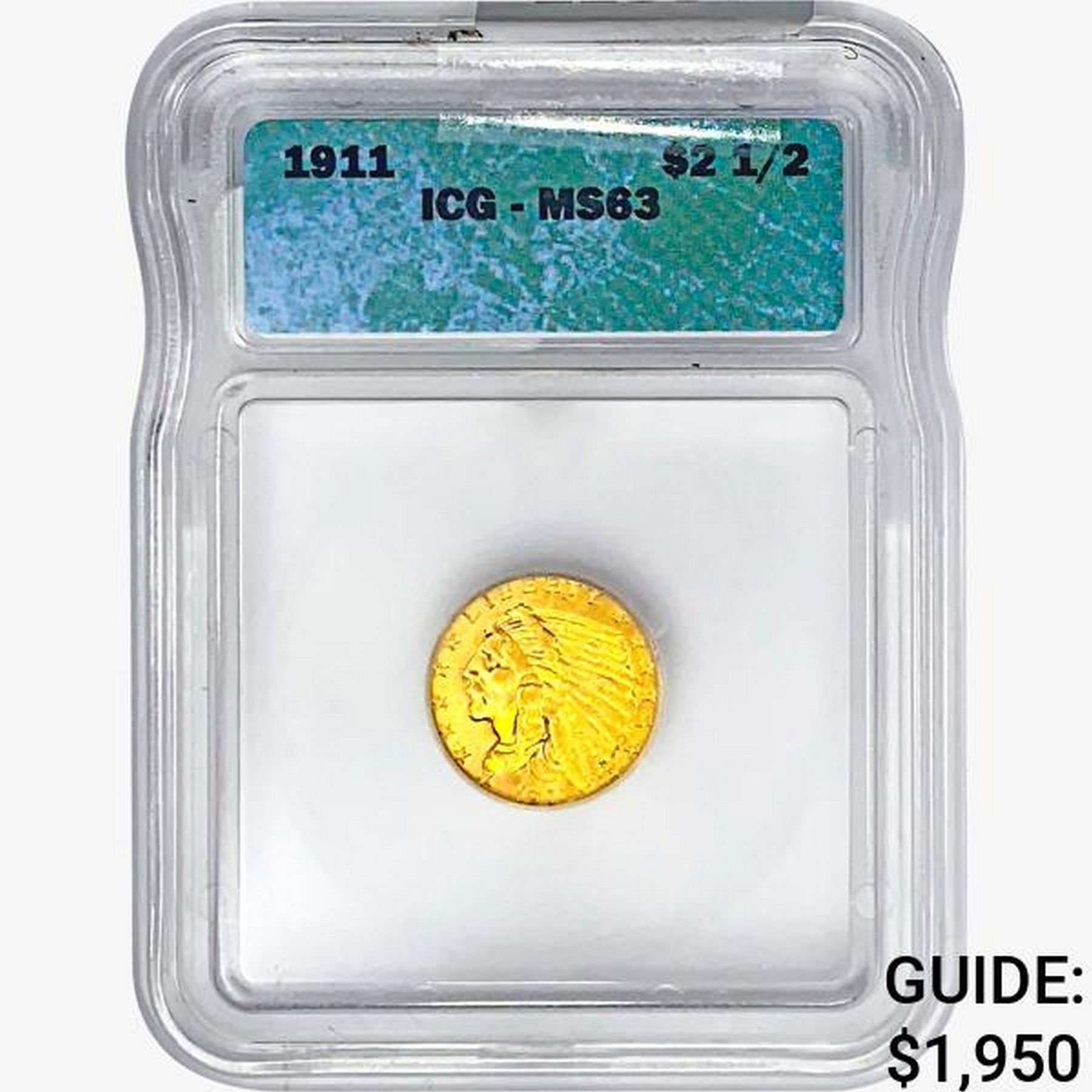1911 $2.50 Gold Quarter Eagle ICG MS63