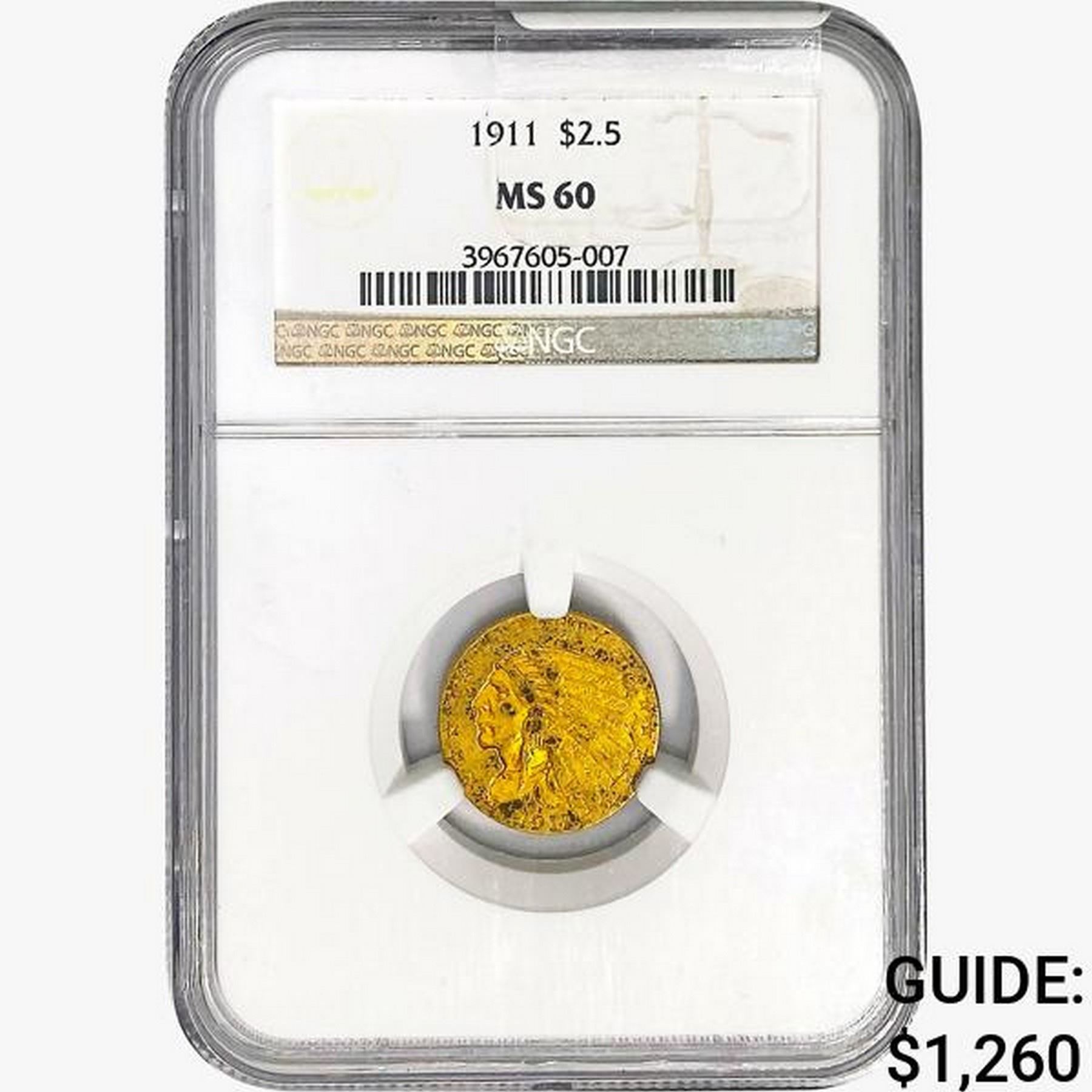 1911 $2.50 Gold Quarter Eagle NGC MS60