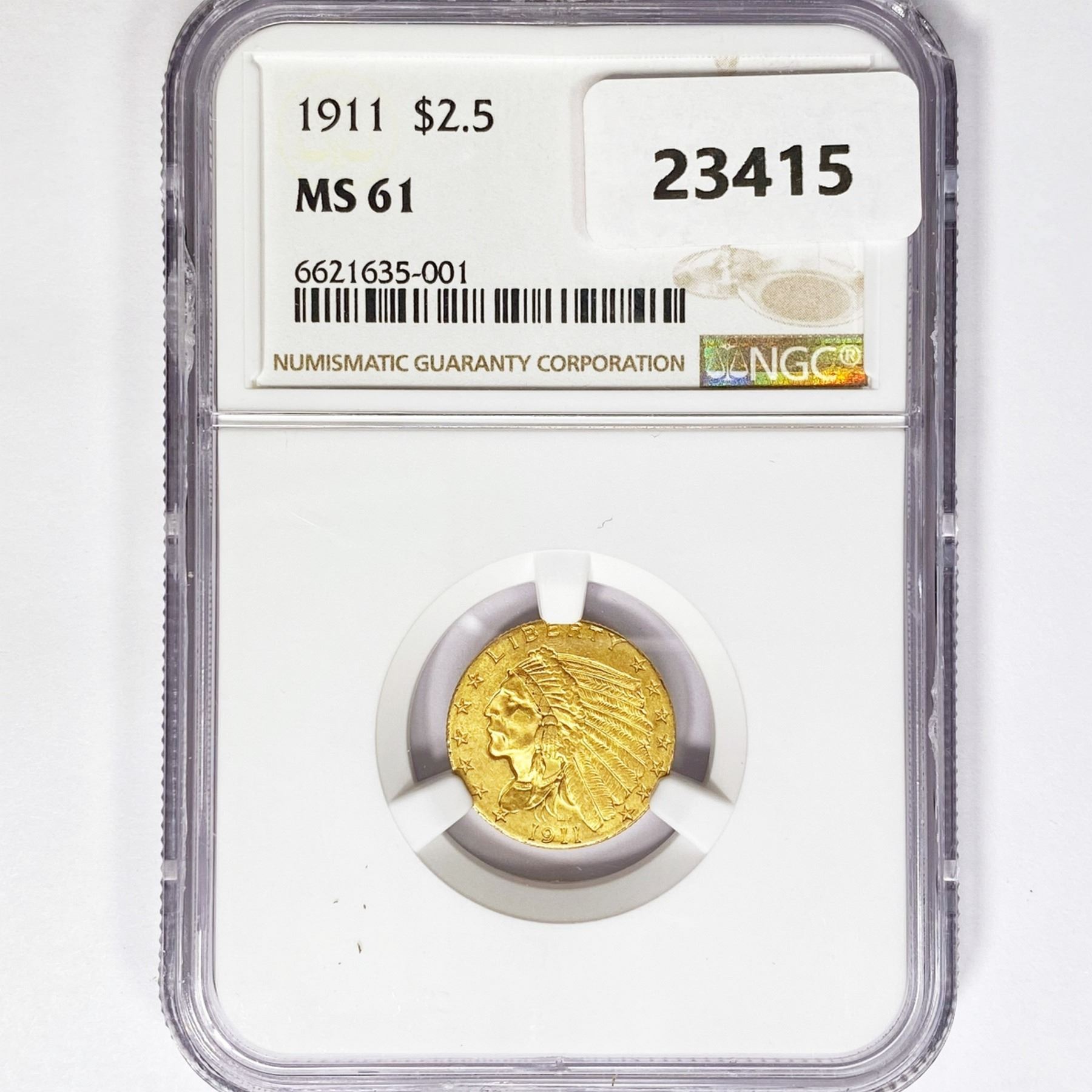 1911 $2.50 Gold Quarter Eagle NGC MS61