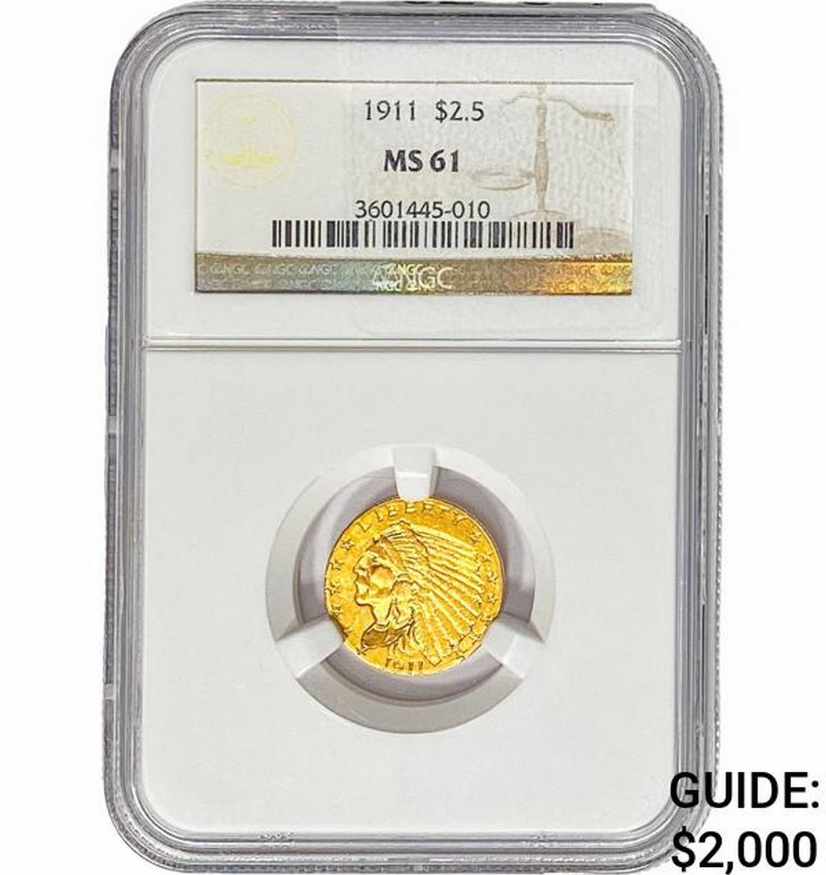 1911 $2.50 Gold Quarter Eagle NGC MS61