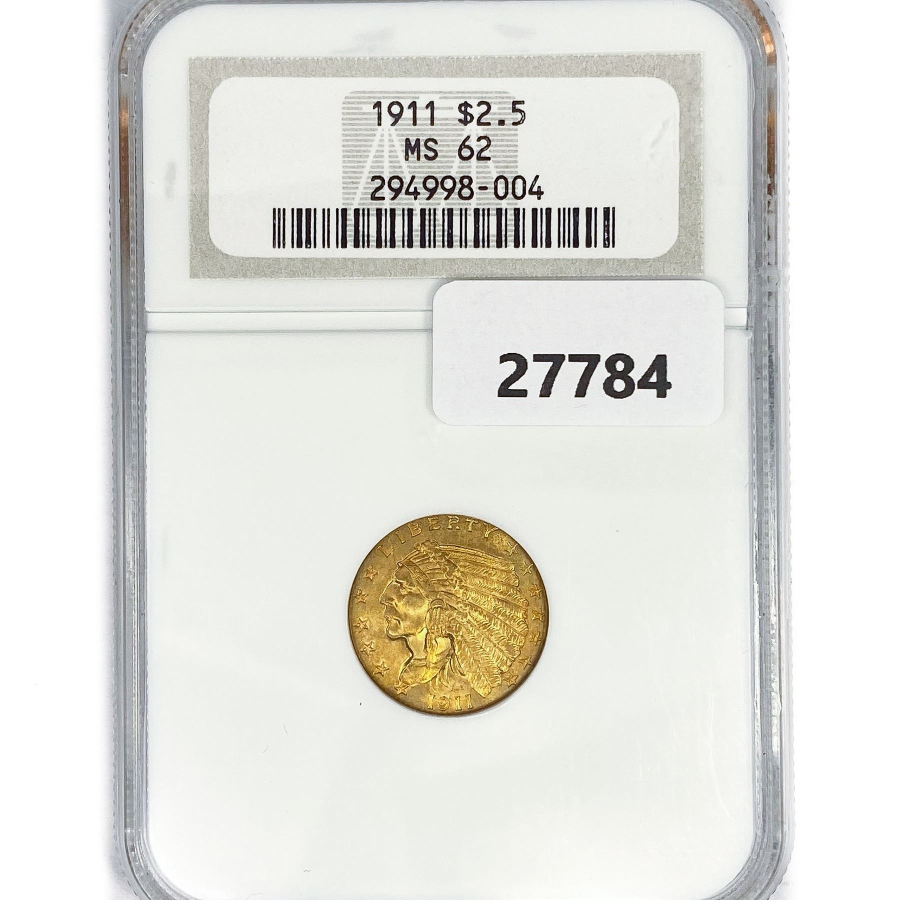 1911 $2.50 Gold Quarter Eagle NGC MS62