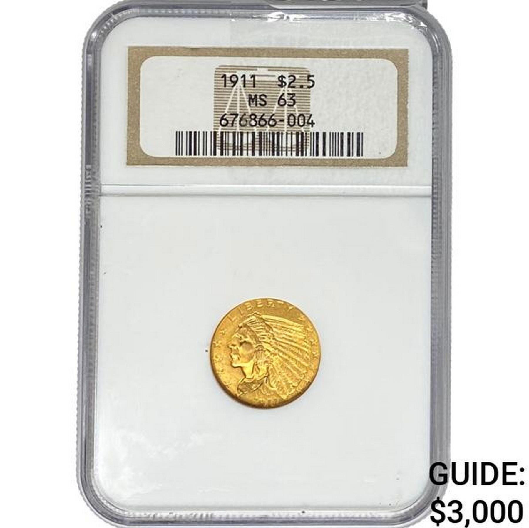 1911 $2.50 Gold Quarter Eagle NGC MS63