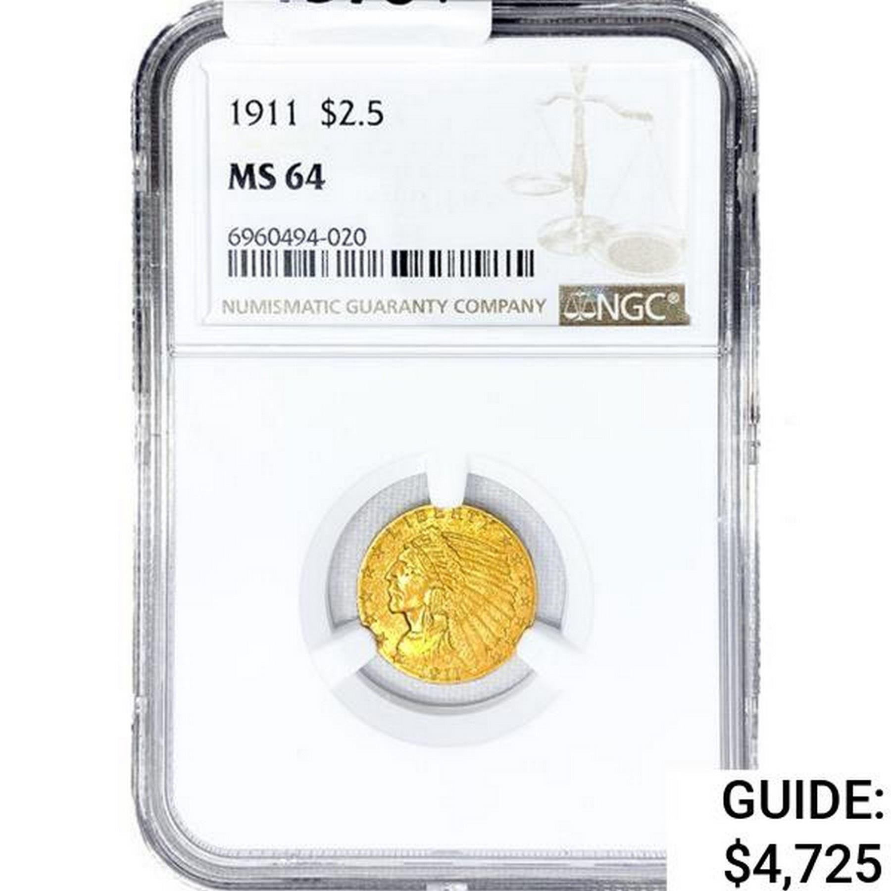 1911 $2.50 Gold Quarter Eagle NGC MS64