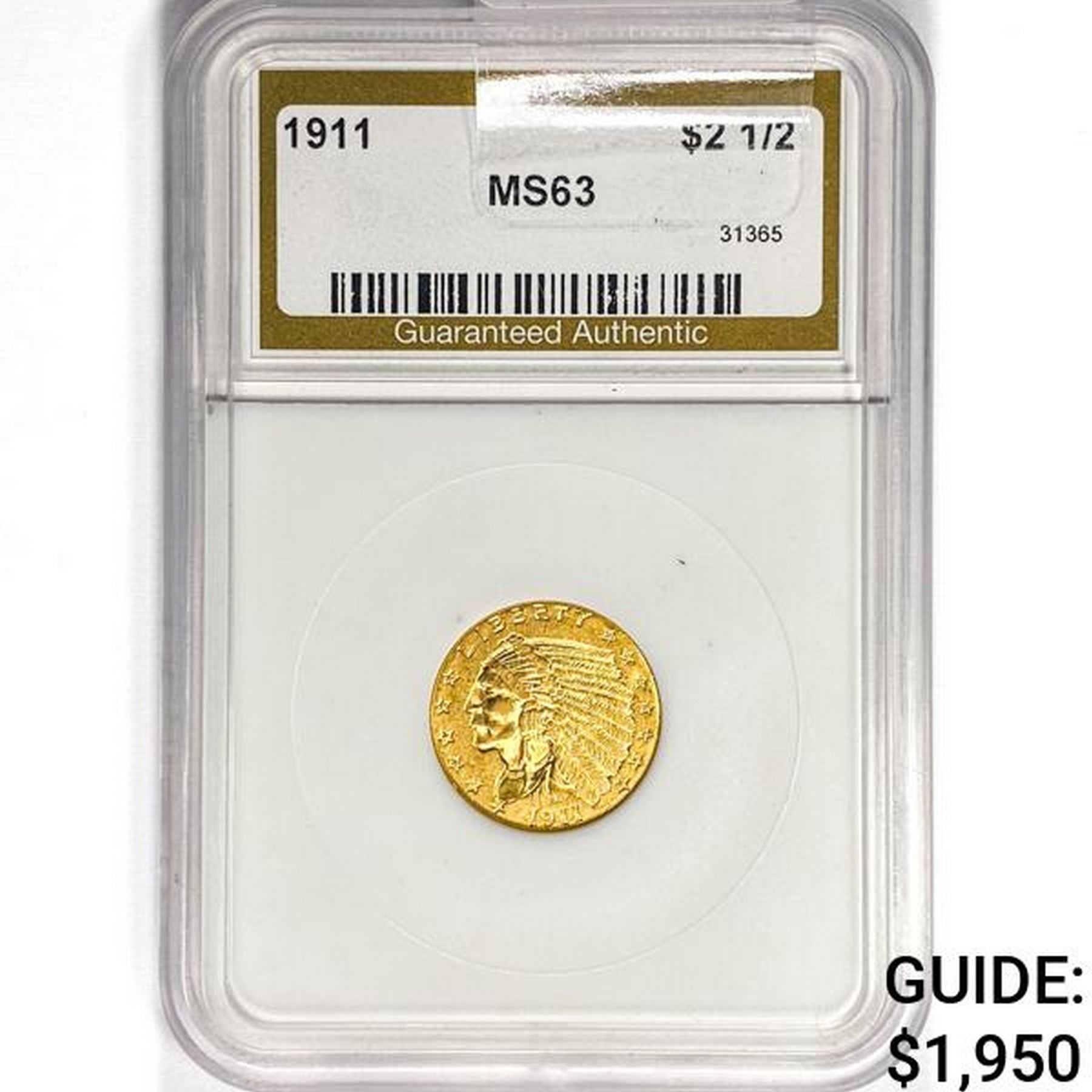1911 $2.50 Gold Quarter Eagle NGS MS63
