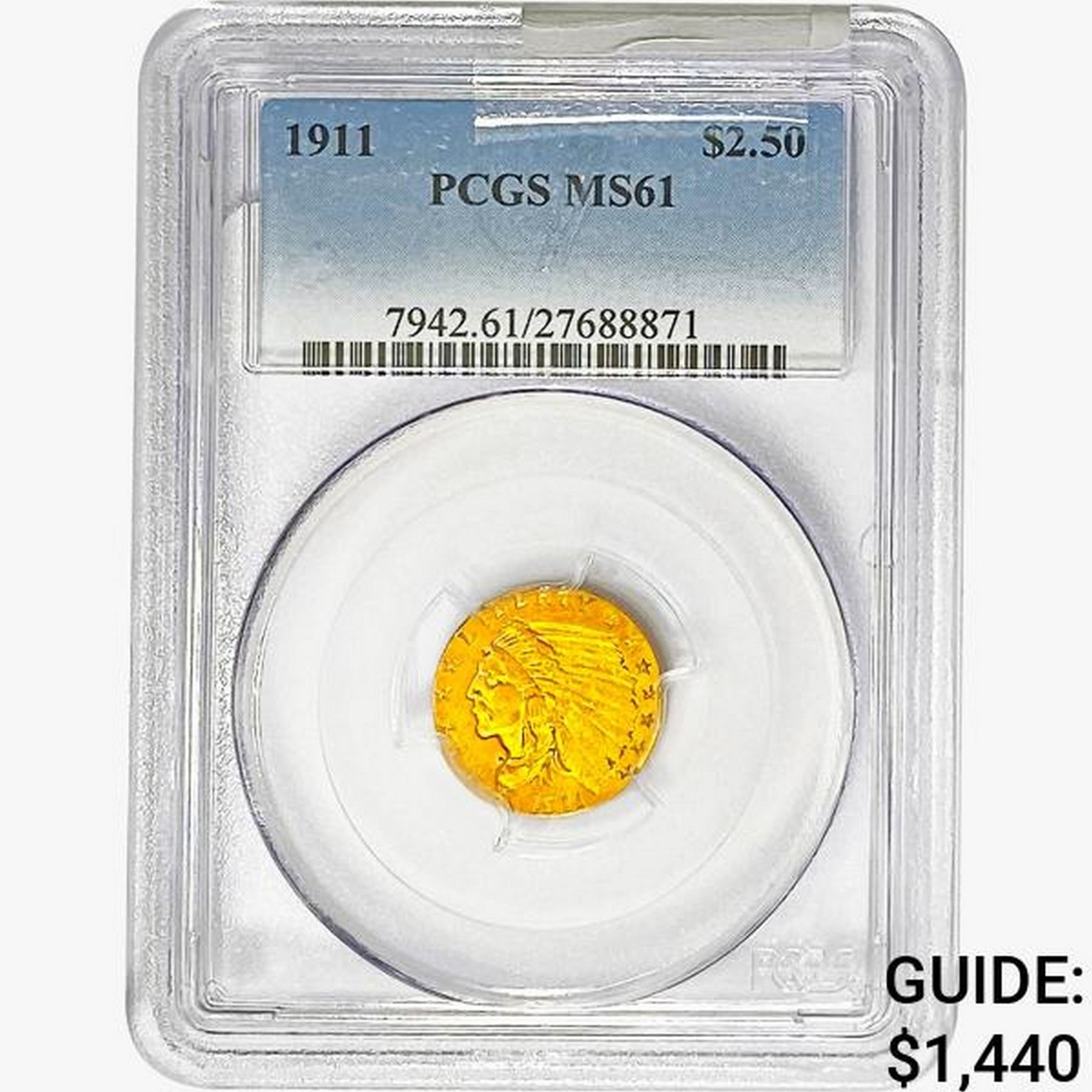 1911 $2.50 Gold Quarter Eagle PCGS MS61