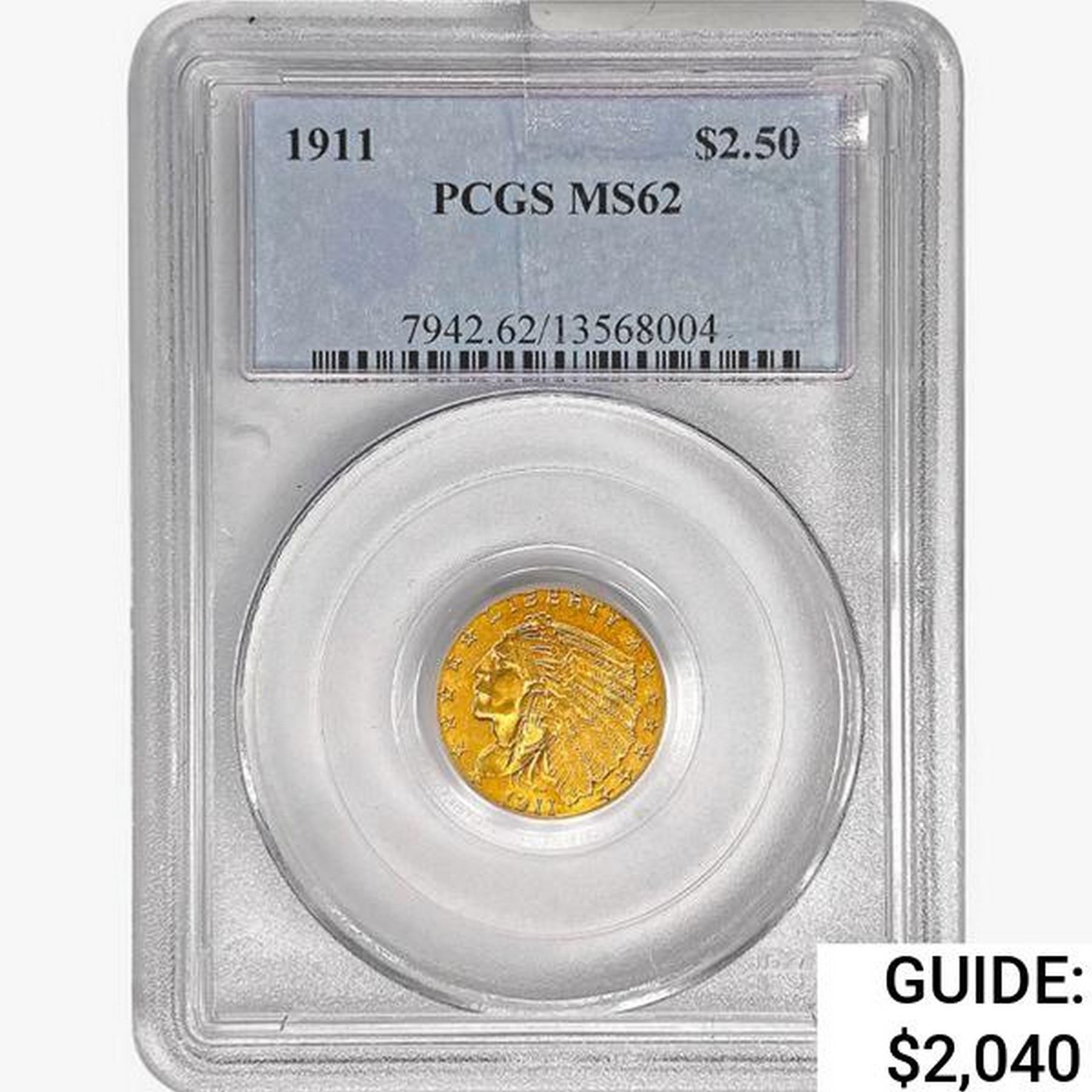 1911 $2.50 Gold Quarter Eagle PCGS MS62