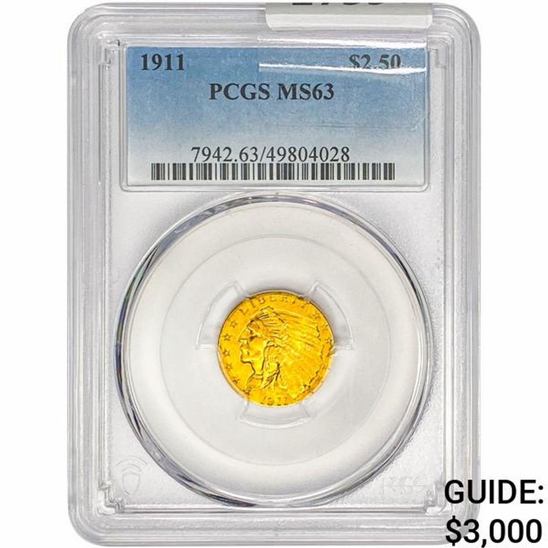 1911 $2.50 Gold Quarter Eagle PCGS MS63