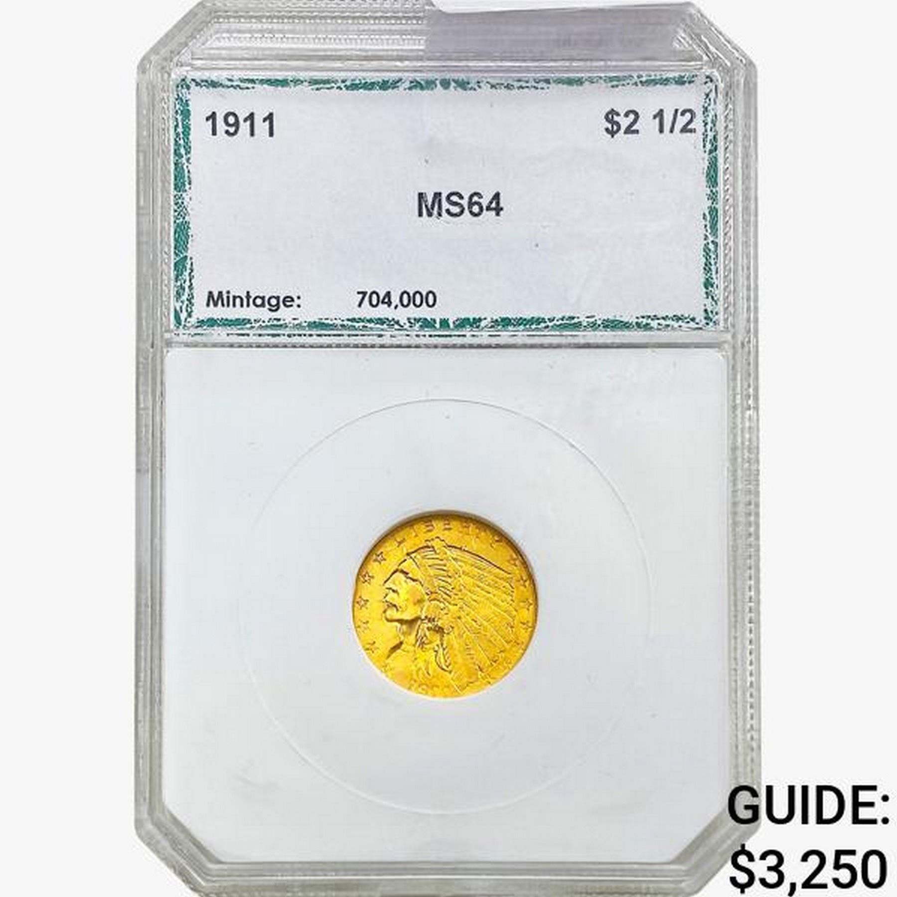 1911 $2.50 Gold Quarter Eagle PCI MS64