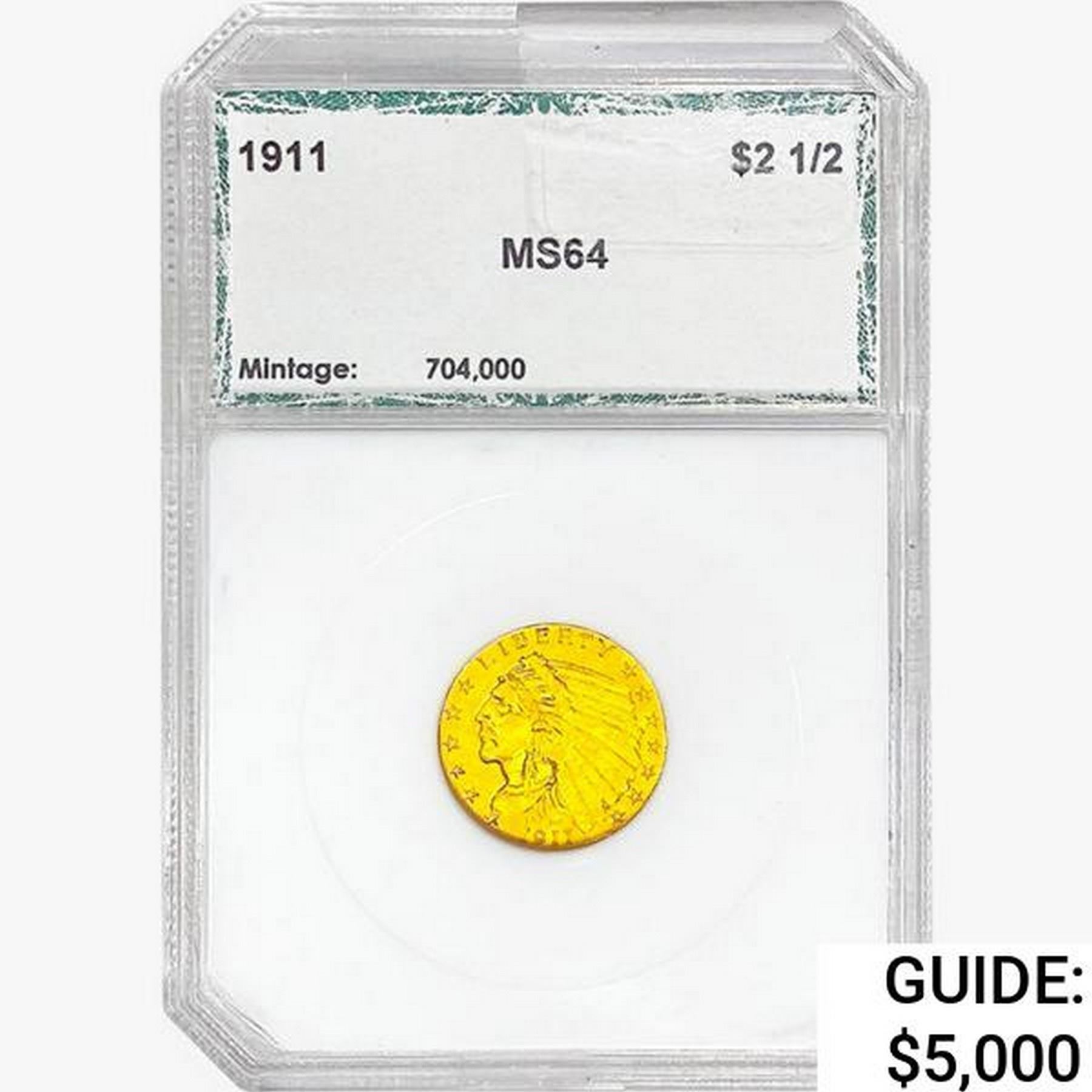 1911 $2.50 Gold Quarter Eagle PCI MS64