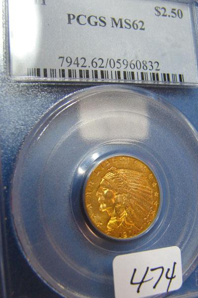 1911 $2.50 Indian Head Gold Coin PCGS MS62