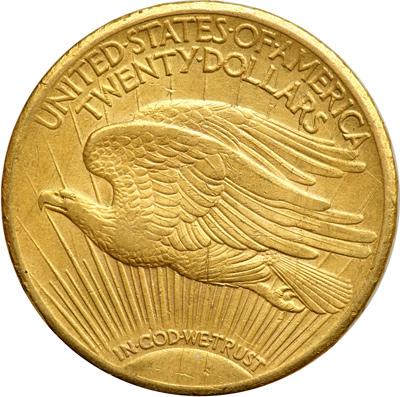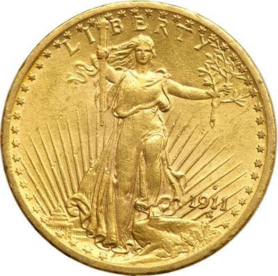 1911 $20. AU 50. Some rim nicks. Low mintage: 197,250.
