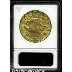 <B>1911<$20> MS62 ANACS.</B></I> A medium intensity, olive-gold survivor, both sides are free of bothersome striking incompleteness. The scattered distractions include a short scrape in the right obverse field. <BR><BR><B>Important notice:</B> Heritage usually auctions material at the rate of 200-250 lots per hour. On some occasions eBay Live bid software or the Internet may not be able to keep up with the pace of the auction. We recommend placing a realistic absentee bid now as insurance to avoid disappointment. Occasionally the auctioneer may eliminate or reject an eBay Live bid, and the auctioneer may also reopen a lot after the close of the eBay live bidding (usually because we missed an audience bid), and may reject your bid even if it shows you as the winning bidder. By bidding via eBay Live, you agree that Heritage may award the lot to another bidder at its sole discretion under the circumstances described above or any other reasonable circumstances. Since eBay bids are not shown to us until we open the lot on the floor, we treat those bids just like floor bids. In most cases the floor responds before the eBay bid is presented to us, due to Internet lag time, so for consistency we have made it a policy that floor bids are always considered first over tie eBay live bids. Also please note that all Heritage lots purchased through eBay Live carry a 20% Buyer's Premium. Please make sure you read the Terms and Conditions before you bid.