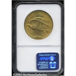 <B>1911<$20> MS62 NGC.</B></I> A touch of flatness appears on Liberty's left knee and on the eagle's breast of this apricot-gold colored double eagle, as do a few light abrasions that are seen scattered about. A mild indention in the field to the right of Liberty's left knee is apparently mint caused.<BR><I>From The Dennis Gundy Collection.</B></I> <BR><BR><B>Important notice:</B> Heritage usually auctions material at the rate of 200-250 lots per hour. On some occasions eBay Live bid software or the Internet may not be able to keep up with the pace of the auction. We recommend placing a realistic absentee bid now as insurance to avoid disappointment. Occasionally the auctioneer may eliminate or reject an eBay Live bid, and the auctioneer may also reopen a lot after the close of the eBay live bidding (usually because we missed an audience bid), and may reject your bid even if it shows you as the winning bidder. By bidding via eBay Live, you agree that Heritage may award the lot to another bidder at its sole discretion under the circumstances described above or any other reasonable circumstances. Since eBay bids are not shown to us until we open the lot on the floor, we treat those bids just like floor bids. In most cases the floor responds before the eBay bid is presented to us, due to Internet lag time, so for consistency we have made it a policy that floor bids are always considered first over tie eBay live bids. Also please note that all Heritage lots purchased through eBay Live carry a 20% Buyer's Premium. Please make sure you read the Terms and Conditions before you bid. </span></font></tr></table></td></tr></table>