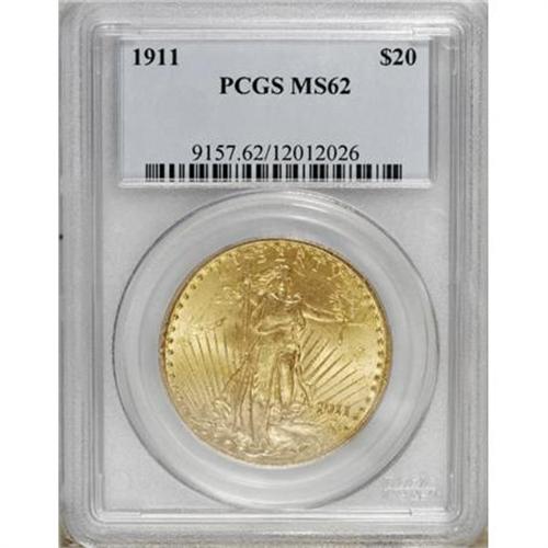 <B>1911 $20 MS62 PCGS.</B></I> PCGS Population (523/980). NGC Census: (758/758). Mintage: 197,200. Numismedia Wsl. Price for NGC/PCGS coin in MS62: $800. (#9157)<BR><BR><B>Coin Engraver:</B> Augustus Saint-Gaudens<BR><BR><b>Shipping:</b> Coins & Currency (<a target="_blank" href="http://www.heritageauctions.com/common/shipping.php">view shipping information</a>)