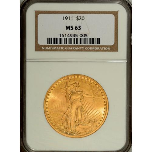 1911 $20 MS63 NGC. Well struck and highly lustrous, wi