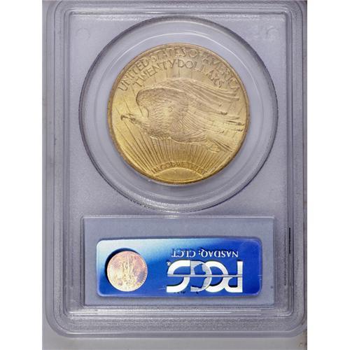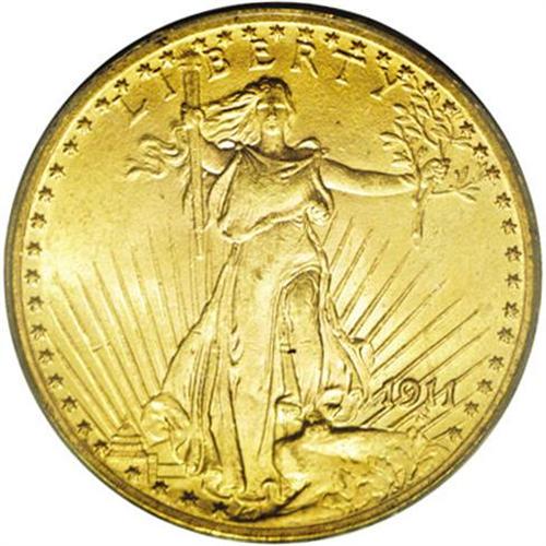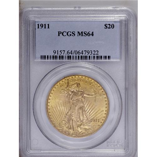 <B>1911<$20> MS64 PCGS.</B></I> This near-Gem portrays the usual sharp strike seen on the 1911, which is manifested in excellent detail on Liberty's face, fingers, and toes and the panes on the Capitol building. Pretty apricot-gold patina imbued with traces of light green is emitted from highly lustrous surfaces that are devoid of significant marks. The grade is determined by a scattering of a few minute ticks.