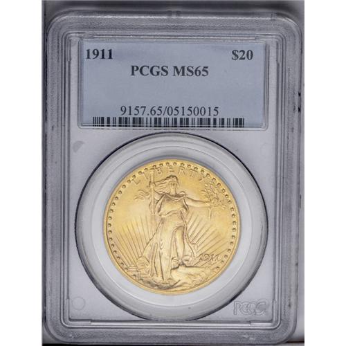 1911 $20 MS65 PCGS. The 1911, with a mintage of 197,25 1911[$20] MS65 PCGS.