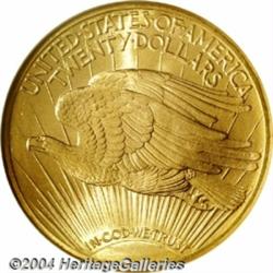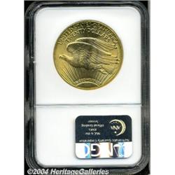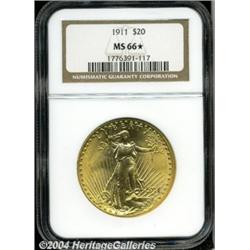 <B>1911<$20> MS66 NGC.</B></I> The 1911 should be more available in high grades than it is with an original mintage of 197,350 pieces. However, it is rarely encountered in MS65 condition and MS66 pieces are almost never available. This is a sharply defined example that has bright, satiny luster over noticeably matte-like surfaces. As one would expect, there are no mentionable abrasions on either side of this remarkable coin. Population: 5 in 66, 1 finer (6/04).<BR><I>From The Sarasota Collection.</B></I> <BR><BR><B>Important notice:</B> Heritage usually auctions material at the rate of 200-250 lots per hour. On some occasions eBay Live bid software or the Internet may not be able to keep up with the pace of the auction. We recommend placing a realistic absentee bid now as insurance to avoid disappointment. Occasionally the auctioneer may eliminate or reject an eBay Live bid, and the auctioneer may also reopen a lot after the close of the eBay live bidding (usually because we missed an audience bid), and may reject your bid even if it shows you as the winning bidder. By bidding via eBay Live, you agree that Heritage may award the lot to another bidder at its sole discretion under the circumstances described above or any other reasonable circumstances. Since eBay bids are not shown to us until we open the lot on the floor, we treat those bids just like floor bids. In most cases the floor responds before the eBay bid is presented to us, due to Internet lag time, so for consistency we have made it a policy that floor bids are always considered first over tie eBay live bids. Also please note that all Heritage lots purchased through eBay Live carry a 20% Buyer's Premium. Please make sure you read the Terms and Conditions before you bid. </span></font></tr></table></td></tr></table>