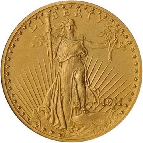 With the 1911 issue, the mint continued the Matte Proofing process which began in 1908. This piece shows thousands of tiny sparkling diamonds of light under magnification and the basic mustard brown color is overlaid by a thin coating of olive-green. The surfaces are virtually flawless, making it a true museum-quality $20 that appears totally without blemish.