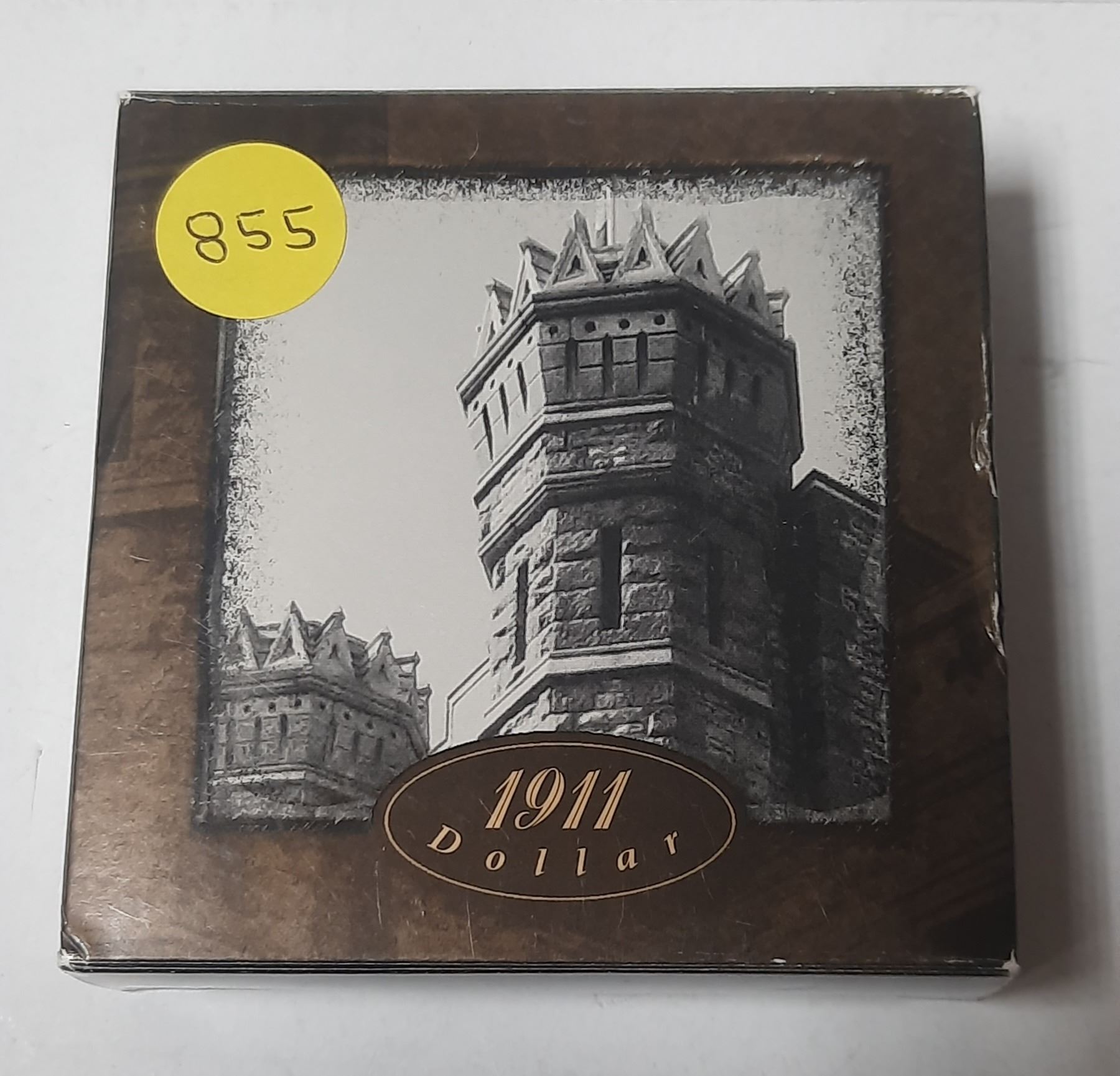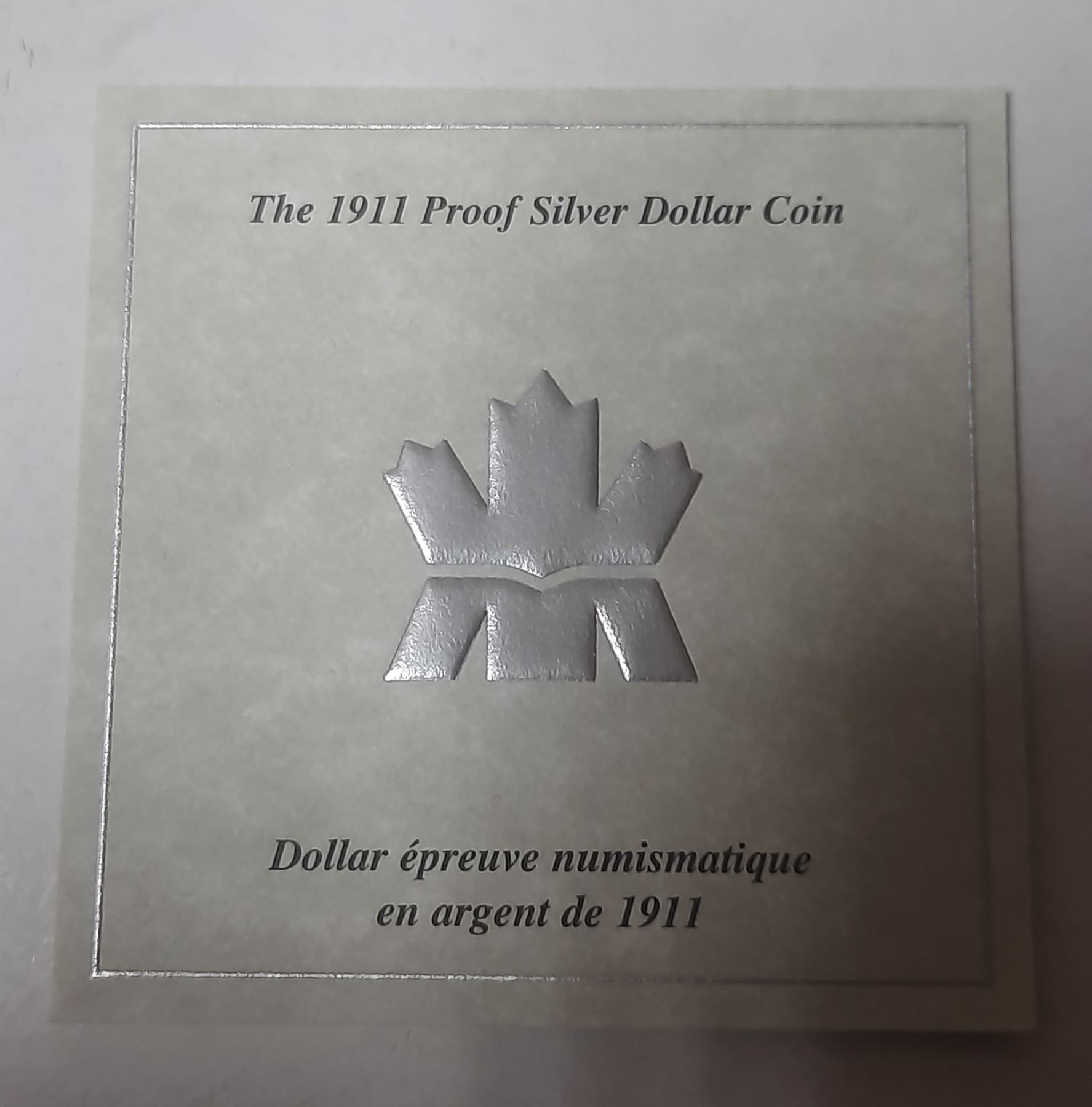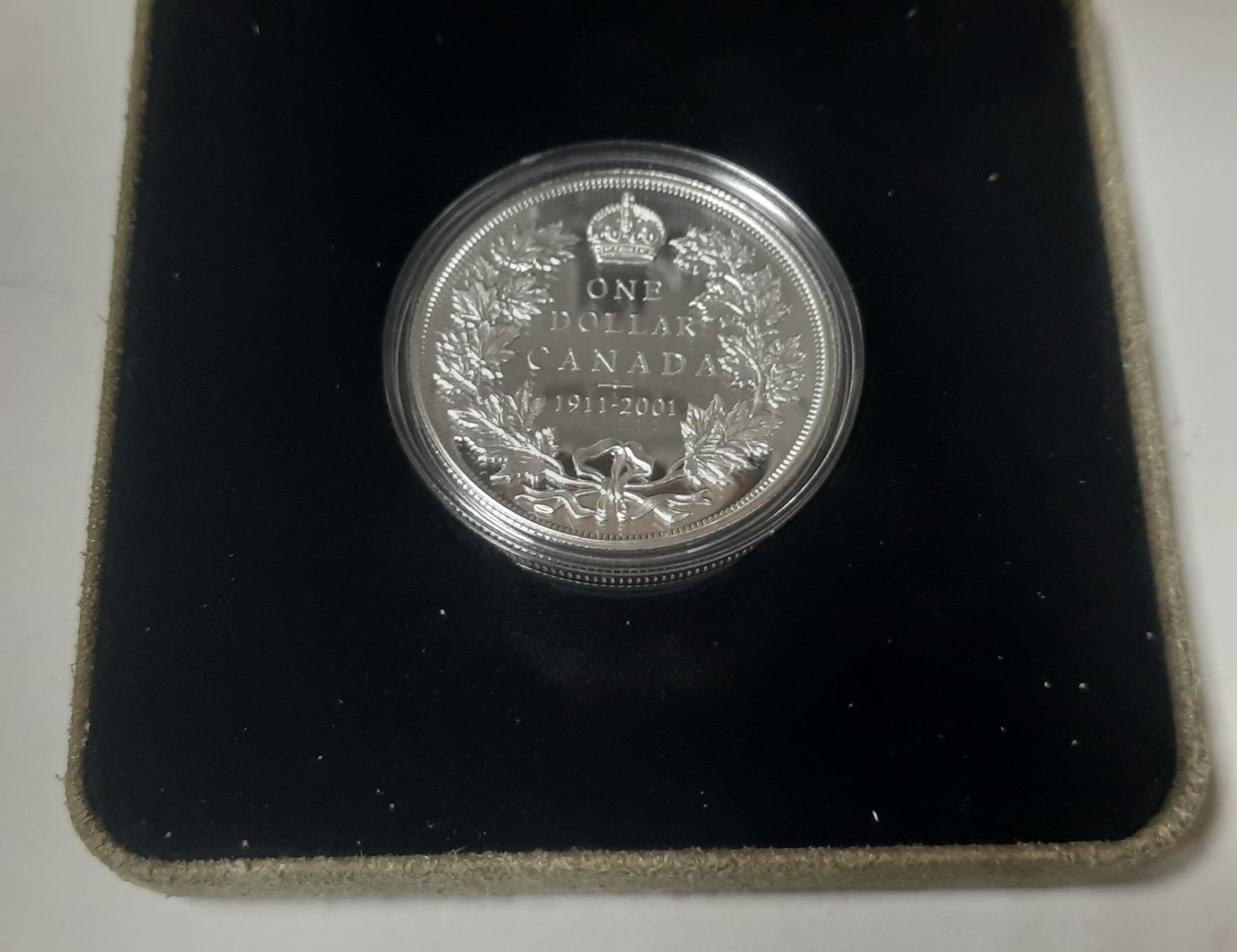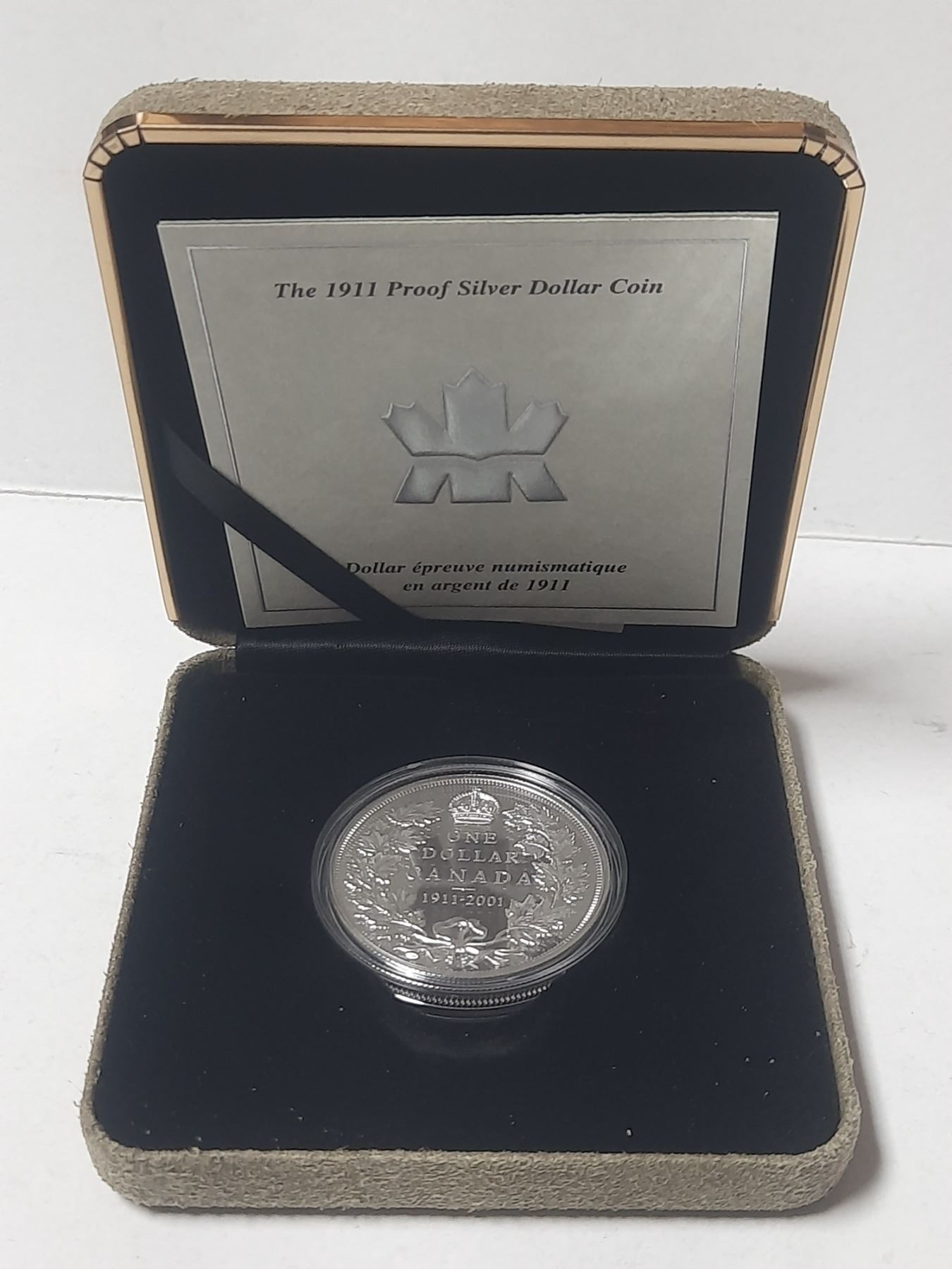 1911 – 2001 Canadian Silver Dollar. Commemorates the 90th Anniversary of the first Pattern Canadian Silver Dollar, minted in 1911. The original 1911 silver dollars are the rarest and most expensive Canadian coins. Proof with Ultra Heavy Cameo. Housed in its original RCM case, plus COA.