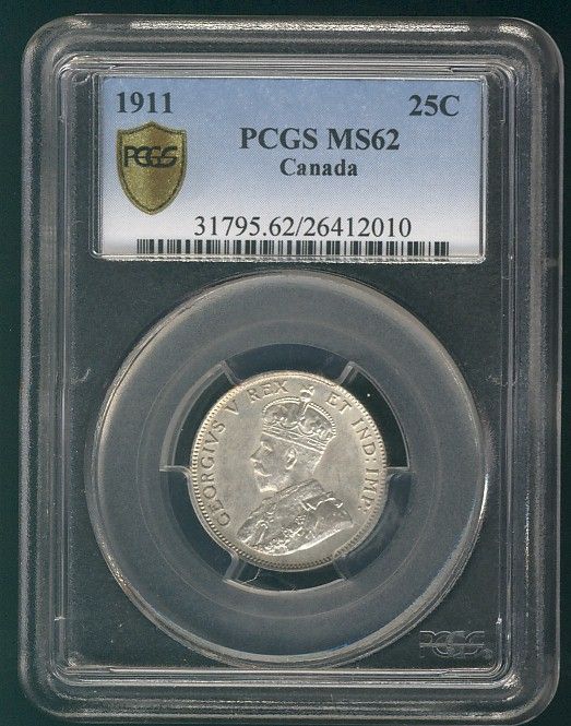 1911 25¢ PCGS MS62. Nice fields and lustre.