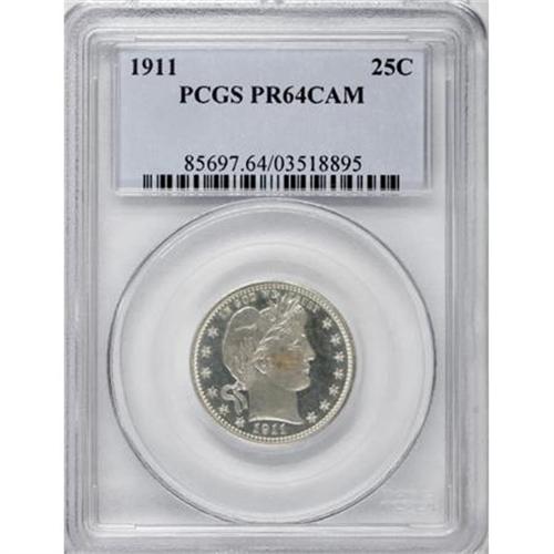 <B>1911 25C PR64 Cameo PCGS.</B></I> The amazing cameoed surfaces are untoned, and exhibit sharply struck design features. A couple of inoffensive marks on the cheek account for the grade.<BR><BR><b>Shipping:</b> Coins & Currency (<a target="_blank" href="http://www.heritageauctions.com/common/shipping.php">view shipping information</a>)