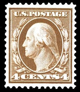 1911, 4¢ Washington, brown, S.L. watermark. Scott 377. Gorgeous centering and color, XF-Sup
