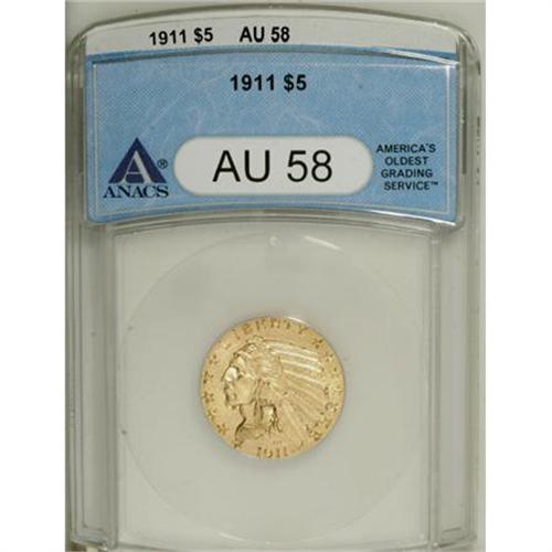 1911 $5 AU58 ANACS. NGC Census: (1066/4663). PCGS