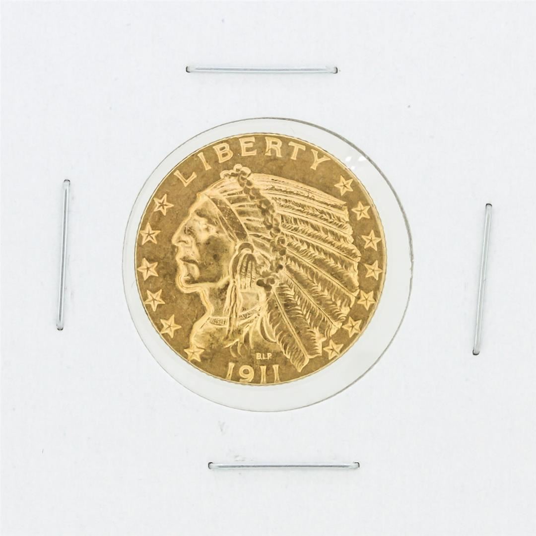 One 1911 $5 CU Indian Head Half Eagle Coin.