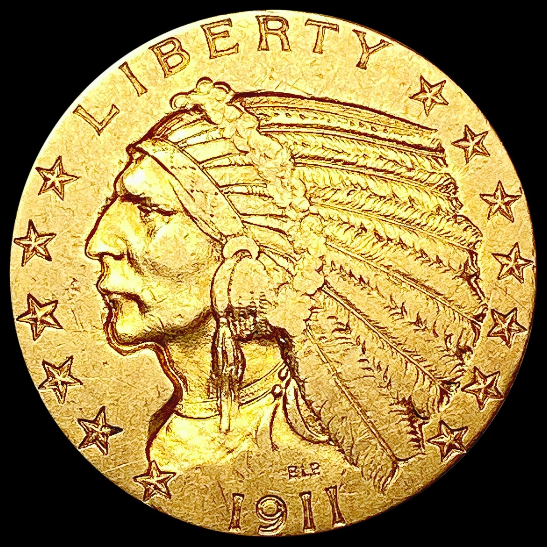 1911 $5 Gold Half Eagle CLOSELY UNCIRCULATED
