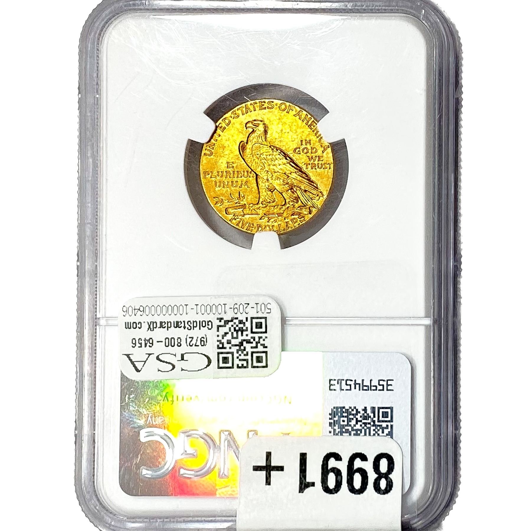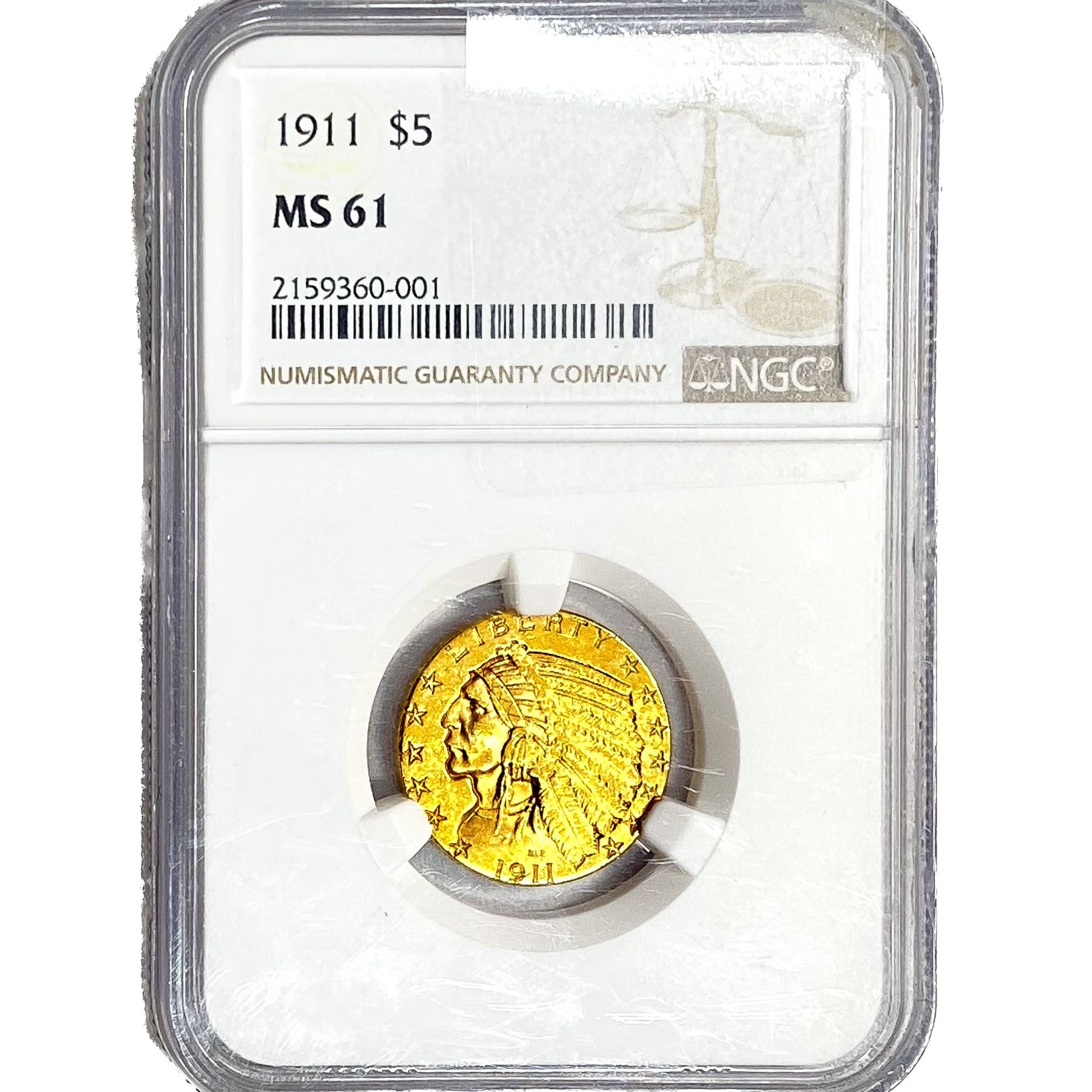 1911 $5 Gold Half Eagle NGC MS61