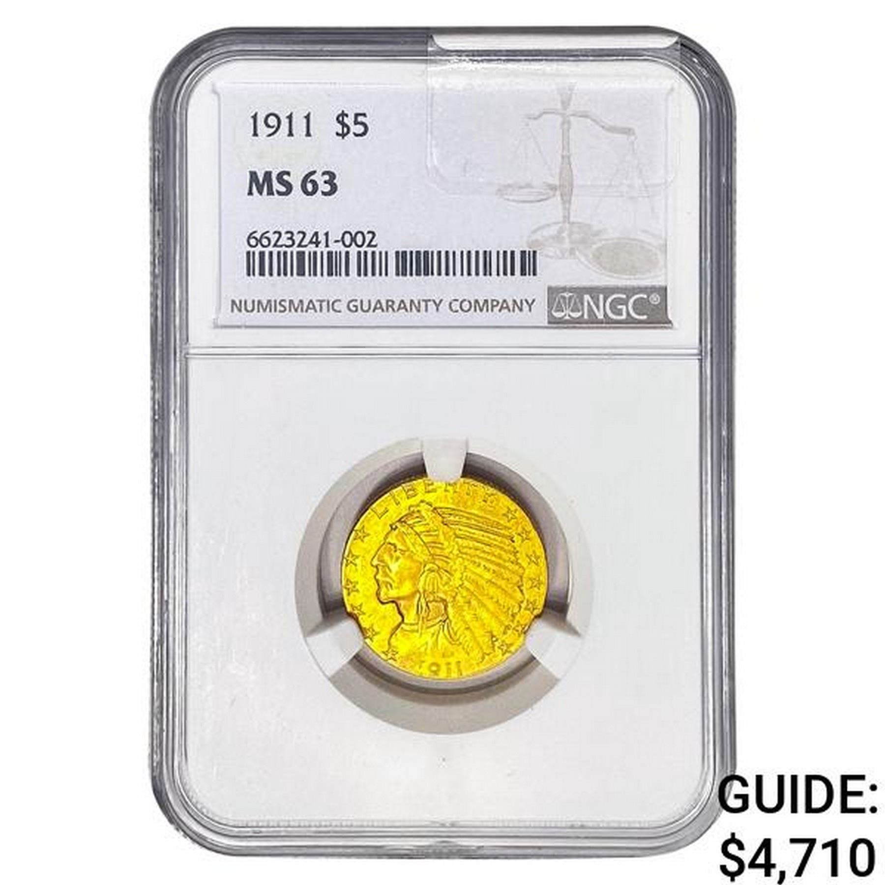 1911 $5 Gold Half Eagle NGC MS63