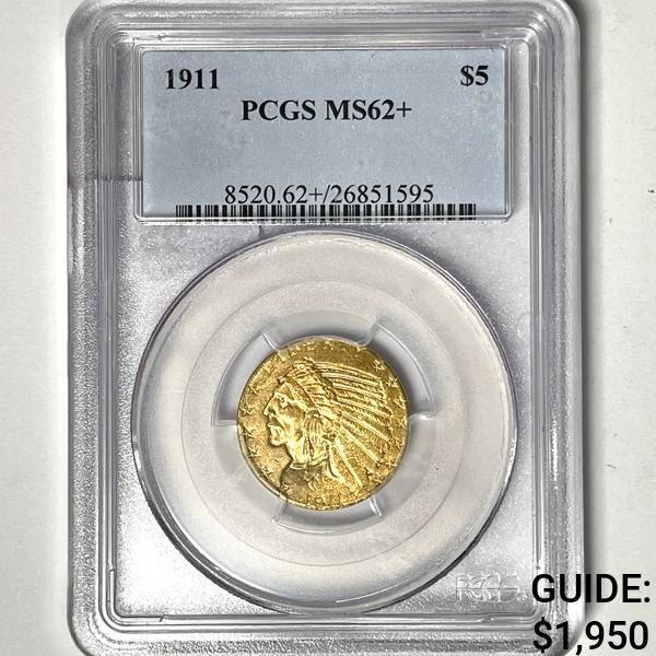 1911 $5 Gold Half Eagle PCGS-MS62+