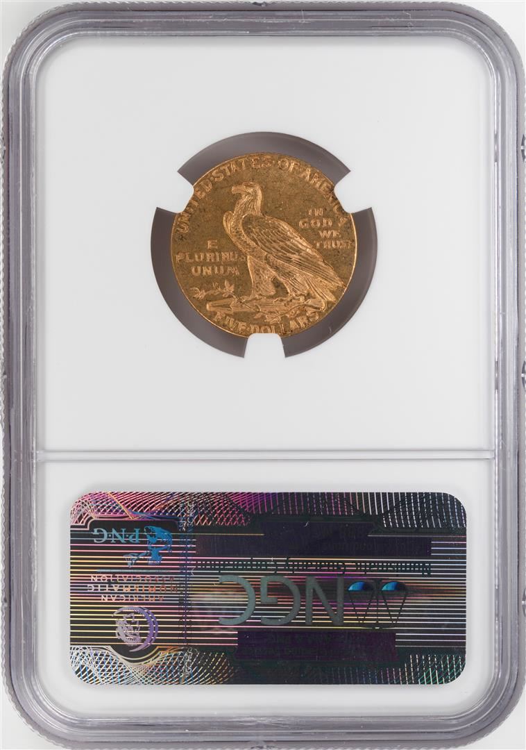 One 1911 $5 Indian Head Half Eagle Gold Coin NGC MS61. NGC Certified.