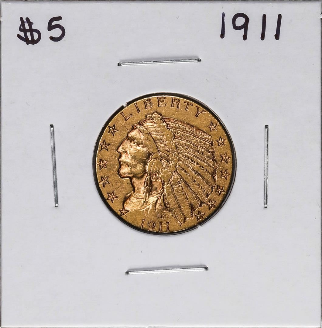 One 1911 $5 Indian Head Half Eagle Gold Coin.