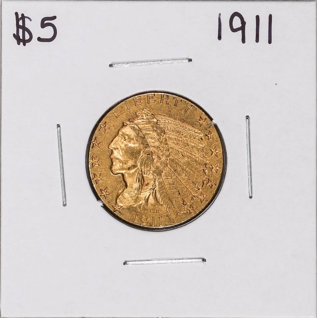 One 1911 $5 Indian Head Half Eagle Gold Coin.