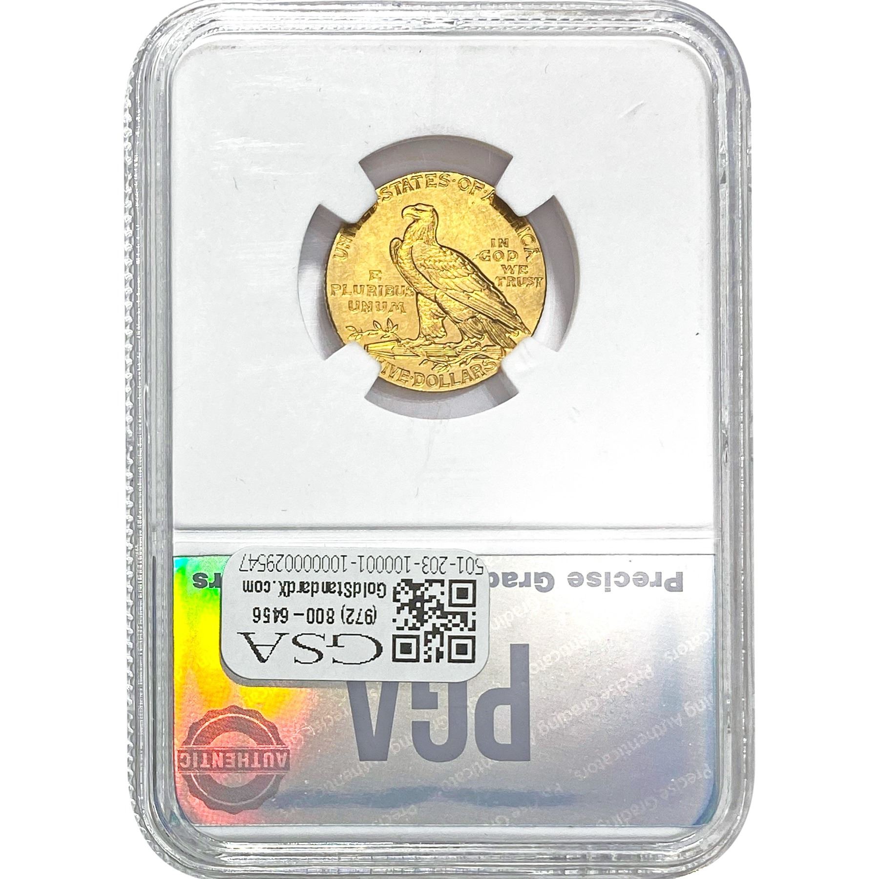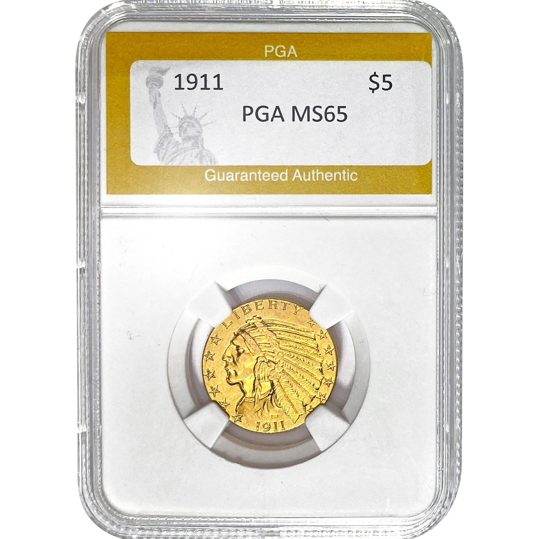 1911 $5 Indian Head Half Eagle PGA MS65