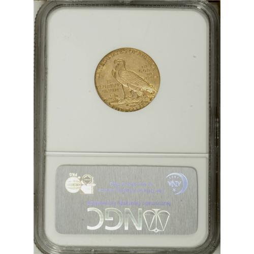1911 $5 MS61 NGC. Soft luster rests over peach-gold su