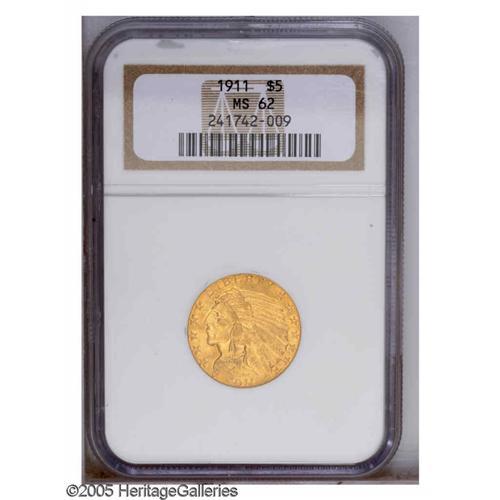<B>1911<$5> MS62 NGC.</B></I> The recessed areas of the design display attractive luster and the surfaces are minimally abraded for the grade.<BR><I>From The Watson Collection.</B></I>