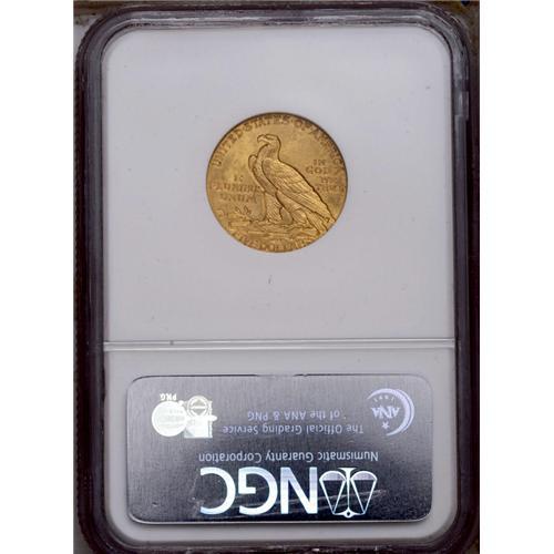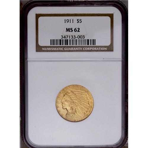 1911 $5 MS62 NGC. Softly lustrous, straw-gold surfaces 1911[$5] MS62 NGC.