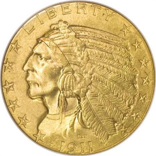 <B>1911 $5 MS63 NGC.</B></I> A softly lustrous Select representative of this comparatively available Indian half eagle issue, well struck with lively yellow-gold fields. Light, scattered abrasions preclude a finer designation. This gold series is widely collected in Mint State, unlike its Liberty predecessor.<BR><BR><B>Coin Engraver:</B> Bela Lyon Pratt<BR><BR><b>Shipping:</b> Coins & Currency (<a target="_blank" href="http://www.heritageauctions.com/common/shipping.php">view shipping information</a>)