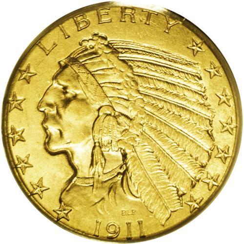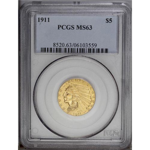 1911 $5 MS63 PCGS. Crisply impressed design elements a