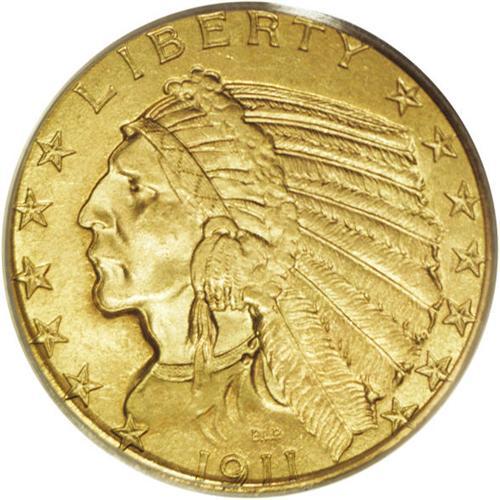 <B>1911 $5 MS64 PCGS.</B></I> Fully lustrous with pleasing green-gold surfaces, this lovely near-Gem quality example is highly desirable for its relatively sharp design details. This issue is usually found with only average strength of strike. A few small abrasions are evident on the reverse, but the obverse is exceptional for the grade. The 1911 half eagle is one of the more common issues in the series, yet few examples have been graded finer than this piece.<BR><BR><b>Shipping:</b> Coin/Currency (<a target="_blank" href="http://www.heritageauctions.com/common/shipping.php">view shipping information</a>)
