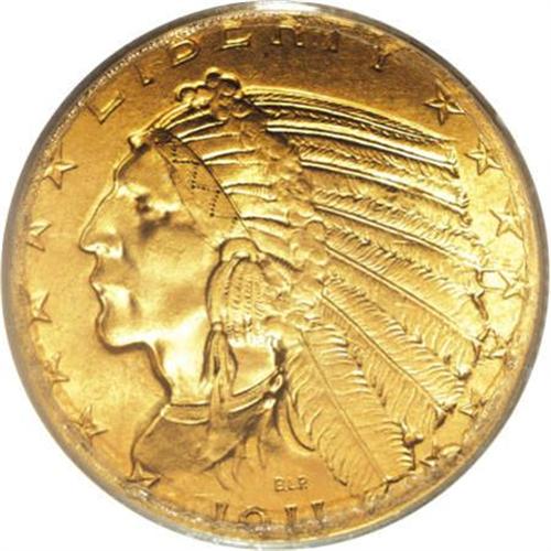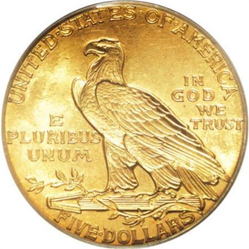 <B>1911 $5 MS64 PCGS.</B></I> A nice piece for a type set, with softly lustrous greenish-gold surfaces and a representative of one of the more frequently encountered issues in the series. Such pieces are much more pricey one grade point finer, and many collectors accordingly turn to near-Gems such as the present example to fill that empty hole in their set.<BR><BR><B>Coin Engraver:</B> Bela Lyon Pratt<BR><BR><b>Shipping:</b> Coins & Currency (<a target="_blank" href="http://www.heritageauctions.com/common/shipping.php">view shipping information</a>)